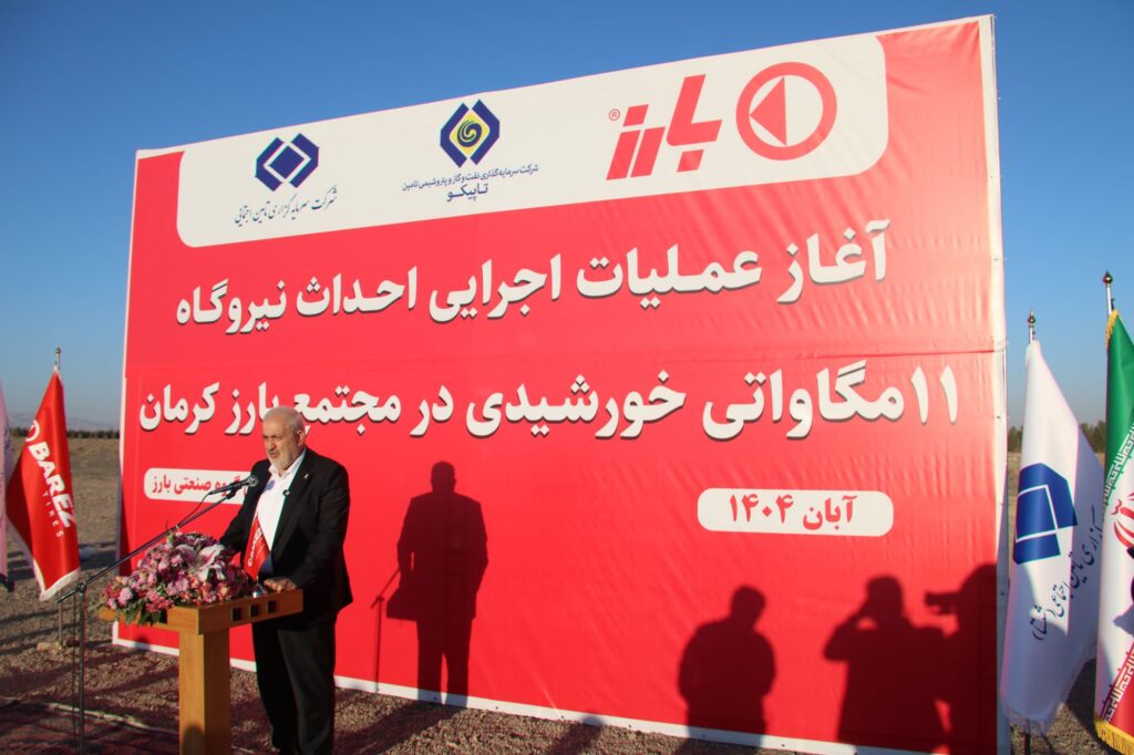 مراسم کلنگ‌زنی نیروگاه 11 مگاواتی خورشیدی مجتمع لاستیک بارز کرمان ، صبح روز پنجشنبه 22 آبان با حضور عباس علی‌آبادی وزیر نیرو، محمدعلی طالبی استاندار کرمان، شهباز حسن‌پور نماینده مردم کرمان و راور در مجلس شورای اسلامی، داور نظری معاون نوآوری و اقتصاد دانش بنیان شستا، بهمن صالحی جاوید مدیرعامل شرکت مدیریت توسعه انرژی تأمین (تدکو)، علیرضا کفشکنان مدیرعامل شرکت افق تامین انرژی پارس و جمال میرزایی مدیرعامل گروه صنعتی بارز، در زمینی به مساحت 16 هکتار در مجاورت این مجتمع برگزار شد.
